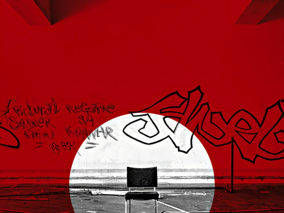 Série photographique en noir et blanc, ponctuée de disques rouges qui se s’inversent d’une version à l’autre. Ce jeu visuel, au-delà de l’effet graphique, interroge la liberté de pensée et la subjectivité du regard.